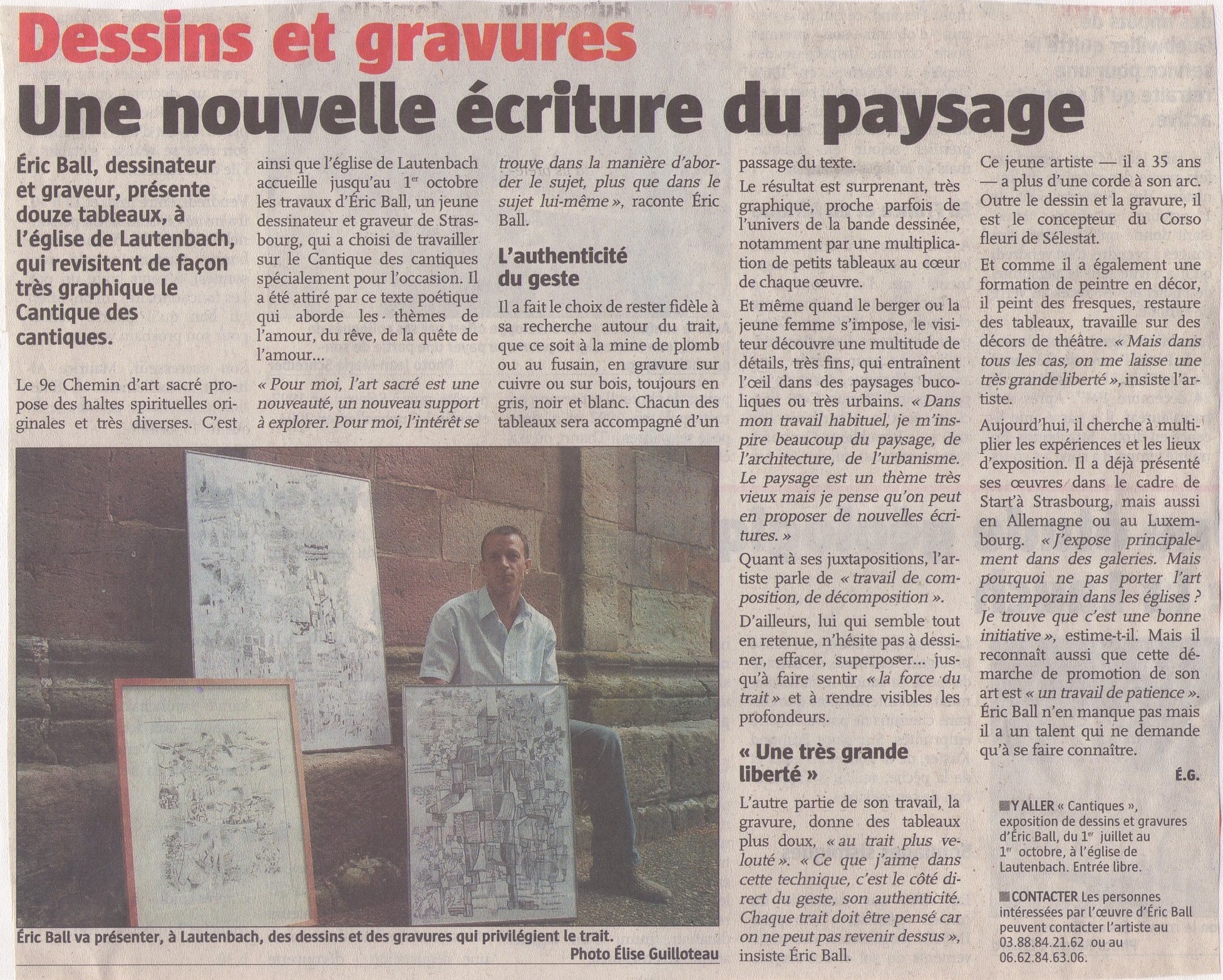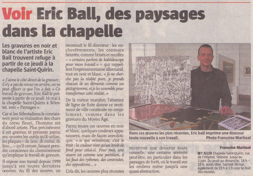 Eric Ball, des paysages dans la chapelle, L’Alsace, 16 mai 2013