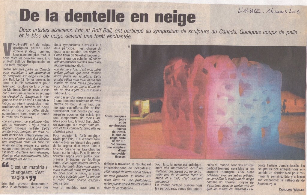 De la dentelle en neige, L’Alsace, 16 mars 2003