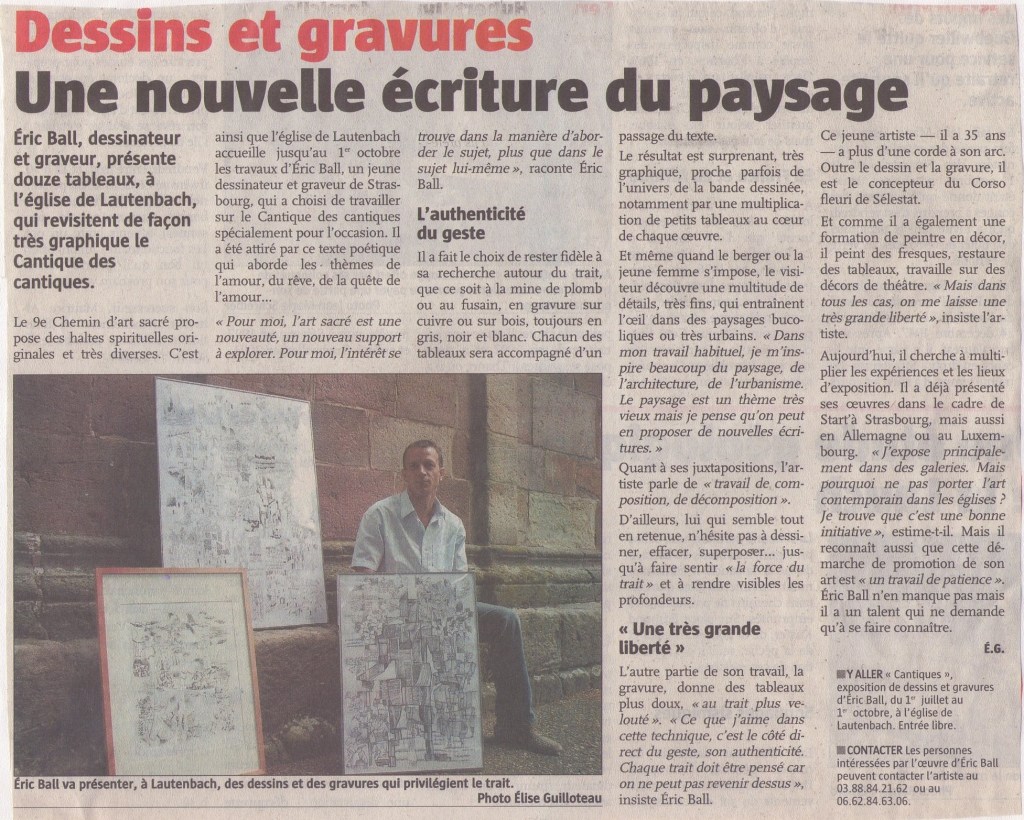 Dessins et gravure. Une nouvelle écriture du paysage, L’Alsace, 25 juin 2006